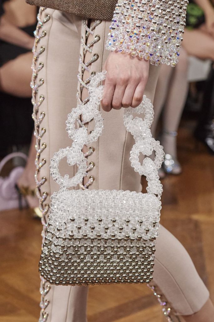 La rete sostituisce la pelle? Potrebbe accadere, visto che anche per la SS24 sembra essere regola. Le borse diventano leggere e capienti.
