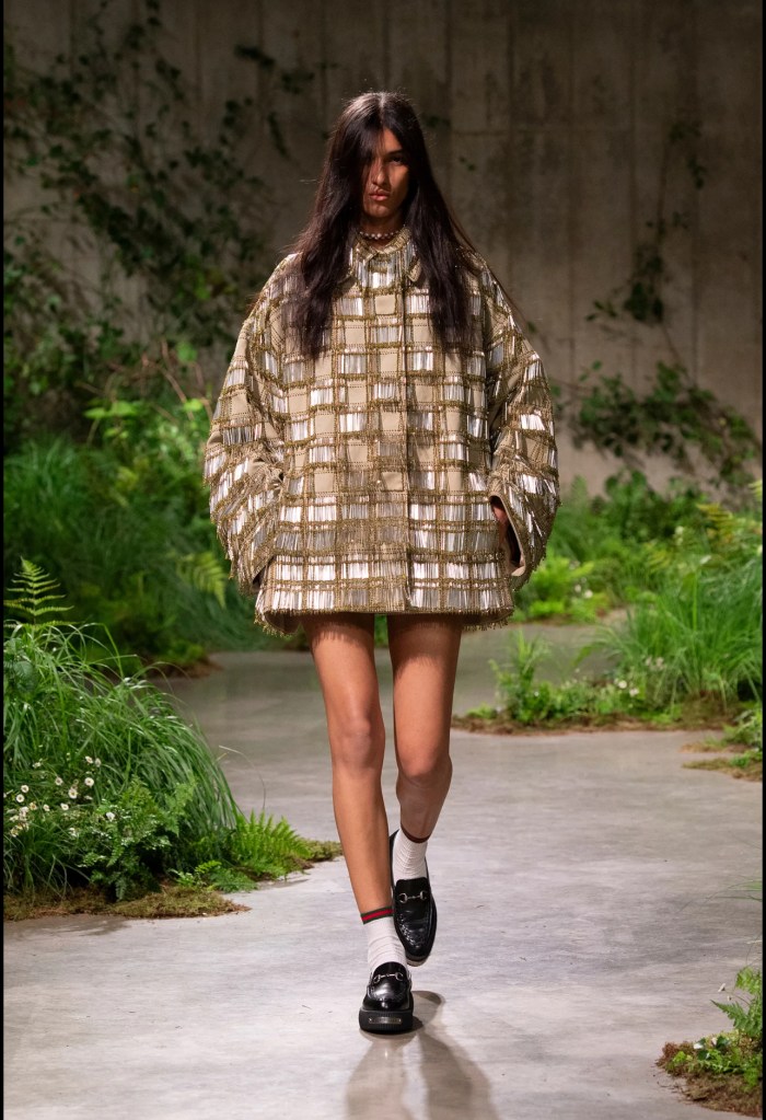 Inoltre Sabato, direttore creativo di Gucci, ha spiegato: “Esplorare una direzione creativa significa entrare in uno spazio pre-esistente e farlo vedere attraverso i tuoi occhi, passando di sala in sala al fine di rimodellare l’edificio. Abbiamo scelto Londra per la sfilata Cruise 2025, sapendo che era la cosa giusta. Devo molto a questa città, che mi ha accolto e ha saputo ascoltarmi. Lo stesso vale per Gucci, il cui capostipite fu ispirato dalla sua esperienza in questa città. Il ritorno della Maison è motivato dal desiderio di immergerci nell’essenza inconfondibile, nella forza creativa della città, con la sua infinita capacità di mettere in relazione i contrasti e di farli dialogare, incoraggiando la co-esistenza. Siamo qui oggi per celebrare questo spirito. La Tate Modern è lo scenario perfetto per raccontare l’essenza della città, con la sua grandiosa Turbine Hall che accoglie e riunisce chiunque, e i suoi Tanks, veri e propri generatori di idee”.