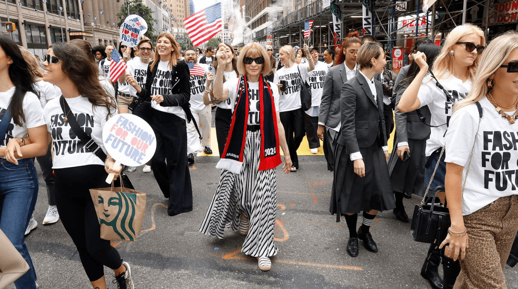 Il Council of Fashion Designers of America (CFDA), insieme alla campagna attivista I Am A Voter e alla testata Vogue, ha deciso di aprire la New York Fashion Week senza nessun party patinato, ma con una marcia a cui hanno partecipato redattori di moda, addetti ai lavori e stilisti, indossando delle t-shirt disegnate da Zac Posen, con la scritta Fashion for Future, abbinate a gonne plissettate, pantaloni sartoriali e naked dress. Una sorta di invito a votare per il bene e il futuro di tutti come espressione di libertà, ma rendendolo decisamente fashion.