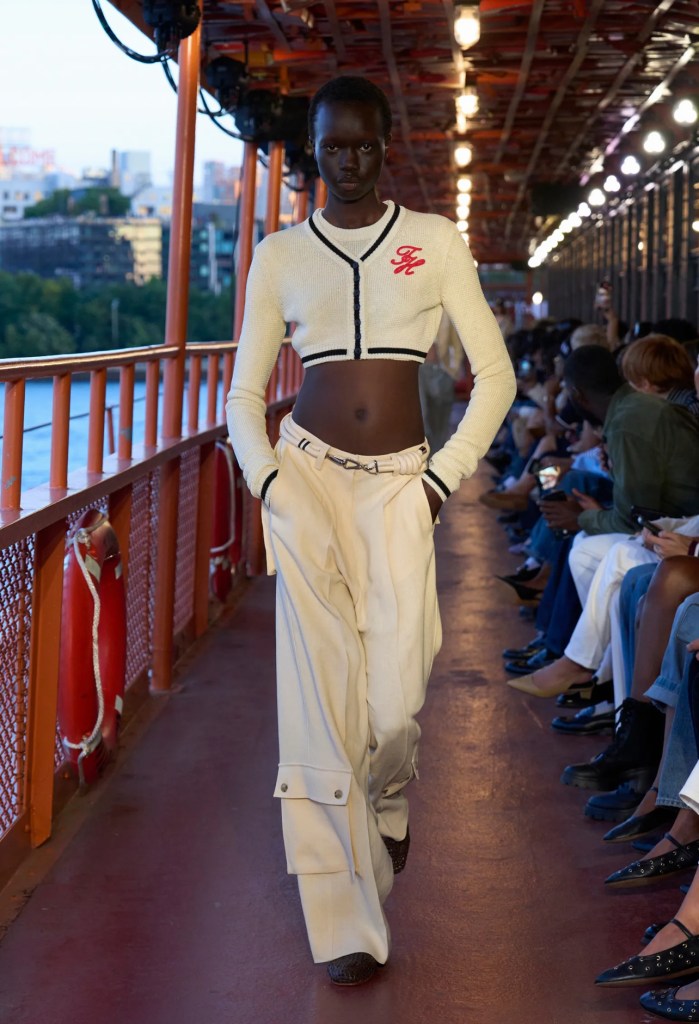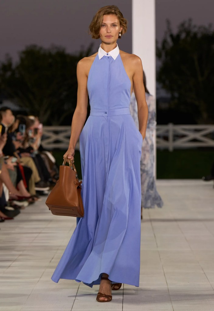 Anche Ralph Lauren, un veterano dello stile firmato USA, ha presentato la sua SS25 in anticipo rispetto al calendario ufficiale. Quest’anno la maison ha scelto gli Hamptons e una schiera di top model d’eccezione come Naomi Campbell e Christy Turlington. Il leitmotiv della collezione è stato lo stile balneare declinato attraverso cotone, pizzo e crochet su maglioni con la bandiera americana, ormai di rigore, abbinati a short crochet, su abiti lunghi e fluidi, sottovesti blu notte e giacche di lino.