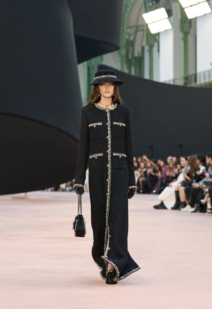 Il fashion show, aperto da Vittoria Ceretti, è stato un compendio di tutti i codici di Chanel, dall’immancabile tweed alle perle, dal bianco e nero, con un tocco Coquette, tra tulli, rouches e fiocchi.