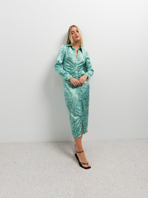Sole chiama sole e per questa primavera vi proponiamo due abiti dai colori brillanti e on trend: l’abito dritto con spalline imbottite e applicazione in metallo laterale con spacco laterale in verde lime e l’abito chemisier in tessuto satin con chiusura centrale e bottoncini oro.